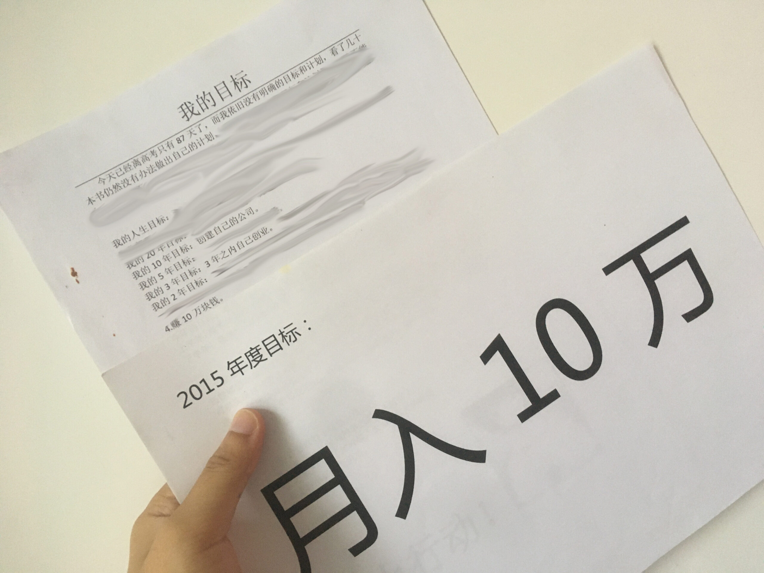 两张放一起看比较有感觉,2015 的年度目标这个现在都记得当时在客厅里贴了一整年直到 2016 夏天搬家要挪窝才扯下来放进盒子里,正常人不用想也知道当时并没那个能力去实现,不过有个念想还是好的,虽然来的有点晚。